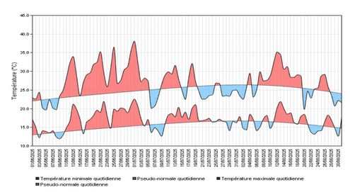 - Le mois de juin a été sec et exceptionnellement chaud, avec 4 épisodes de fortes chaleurs, dont une vague de chaleur du 29 juin au 2 juillet.
