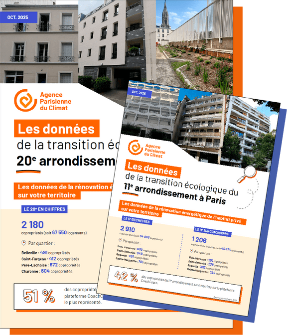 L’Agence Parisienne du Climat accompagne les Mairies d’arrondissement pour mettre en œuvre la transition écologique de manière opérationnelle. Dans cette logique, elle met à disposition des équipes municipales des fiches proposant un état des lieux chiffré des dynamiques observées dans chaque arrondissement parisien, à travers les thématiques suivantes :