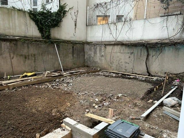 La 1re étape d’un tel projet est la démolition de la dalle en béton. Cette première phase peut durer 3 à 4 semaines en fonction de l’état actuel de la cour, mais également de l’accessibilité de la cour.