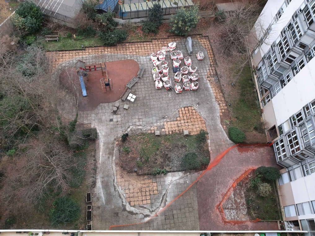 Cette grande cour sur dalle de 1400 m² était déjà végétalisée à hauteur de 670 m², ce qui représentait déjà près de 50 % de l’espace total de la cour.